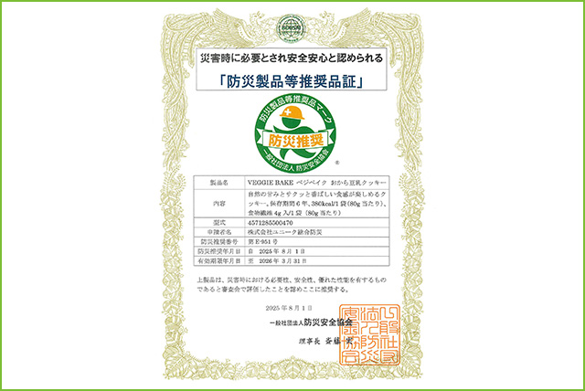 厳正なる審査の結果、災害時に有効活用でき安心安全と認められる「防災製品等推奨品」に認定されました。